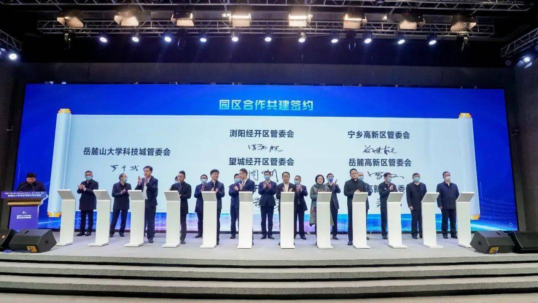 现场,大科城与浏阳经开区、岳麓高新区等6个重点产业园区就共同打造“飞地科创园区”签订框架合作协议,全面开启大科城赋能全省、全市园区高质量发展的新征程;柴立元院士团队领衔的国家重金属污染防治工程技术研究中心中试孵化基地等7个创新平台项目,谢辉教授团队领衔的埃米材料与生物制剂研发应用及产业化项目等6个成果转化项目现场签约。
